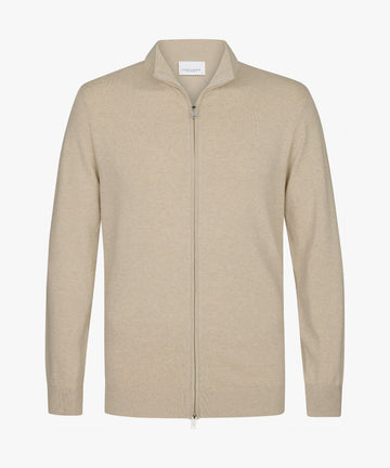 Leichter Full Zip Cardigan in einem zurückhaltenden Beige ist gefertigt aus einem weichen Materialmix aus...