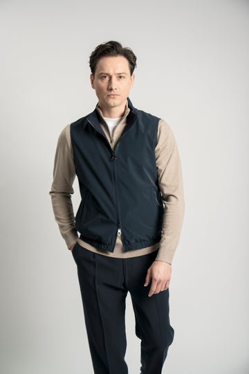 Diese Wendeweste vereint Funktionalität mit einer eleganten, zurückhaltenden Ästhetik. Das Modell ist beidseitig tragbar; die...