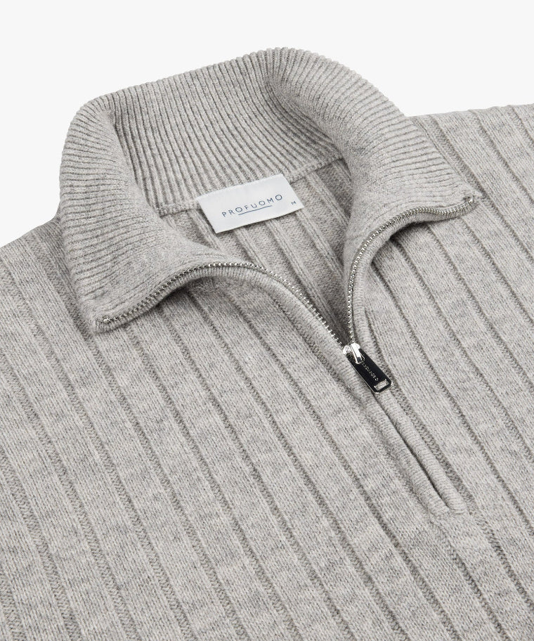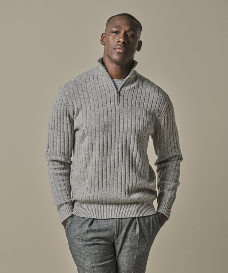 Half Zip Pullover aus einem weichen Wollmix mit Modalanteil. Der Stehkragen und der Metallreissverschluss bringen Struktur und eine leichte Note von Lässigkeit, ohne die klare Linie zu verlieren.