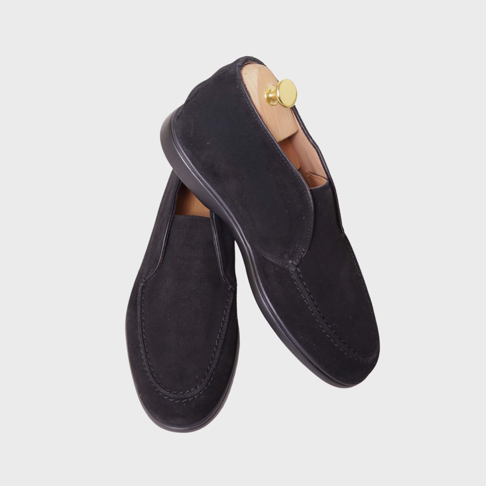 Weiche Hightop-Boots aus echtem Veloursleder mit leicht erhöhter Knöchellinie – ein komfortabler Begleiter für die kältere Jahreszeit. Die Form schützt zuverlässig vor Wind und Kälte, ohne an Eleganz zu verlieren.