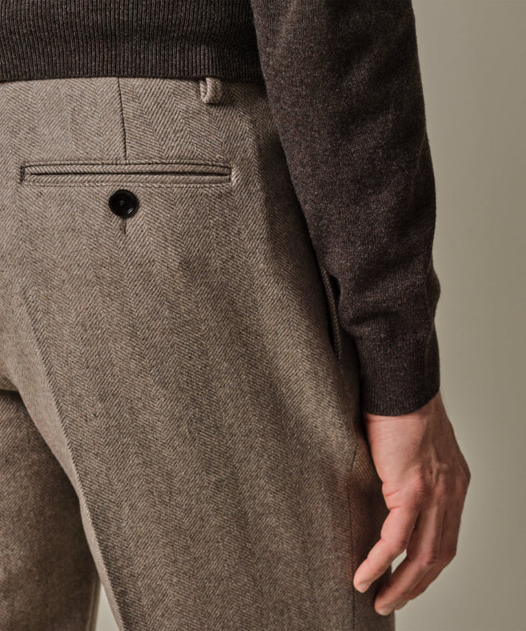 Gerade geschnittene Hose aus 100% Wolle mit klassischem Fischgrätmuster.