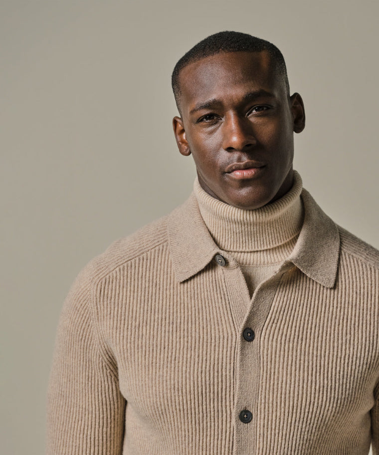 Die durchgehende Knopfleiste macht das Modell vielseitig – tragbar als Strickjacke oder als obere Schicht in Layering-Looks.