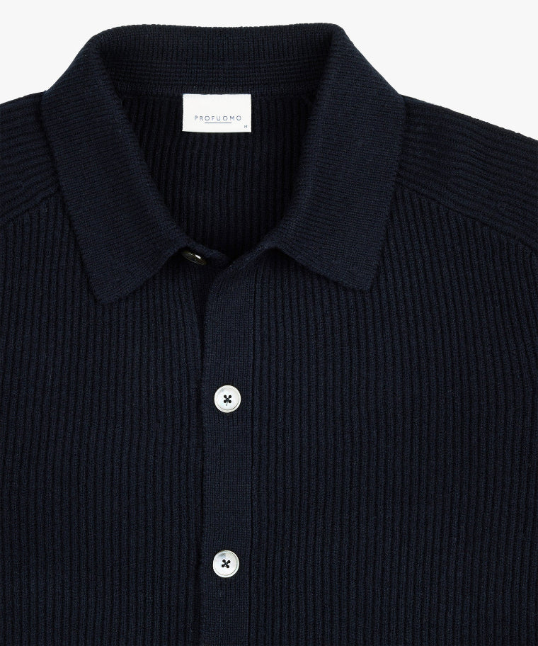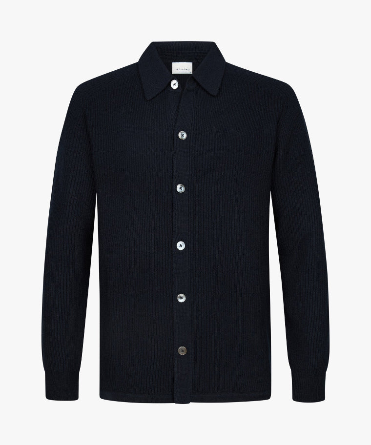 Overshirt aus 100% Wolle in tiefem Navy, gestrickt aus kompaktem, warmem Garn.