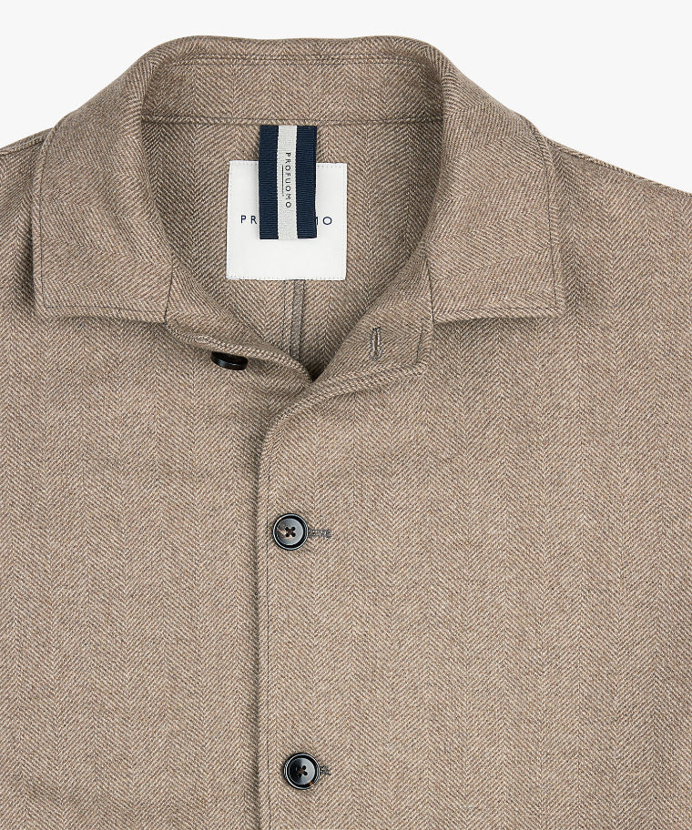 Overshirt aus 100% Wolle mit klassischem Fischgrätmuster in warmem Braunton.