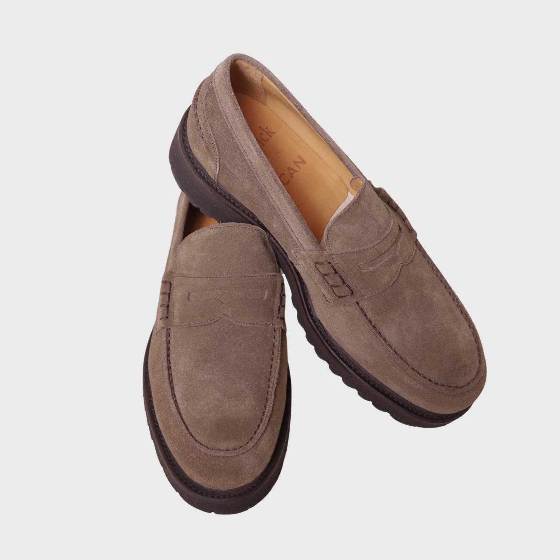 Zeitlose Penny Loafer aus hochwertigem Veloursleder – eine moderne Interpretation des Klassikers, entworfen für die kältere Jahreszeit. Das dichtere, strapazierfähige Leder und die stabile, markante Sohle bieten optimalen Halt und Komfort auch bei kühlerem Wetter.