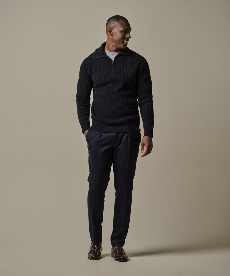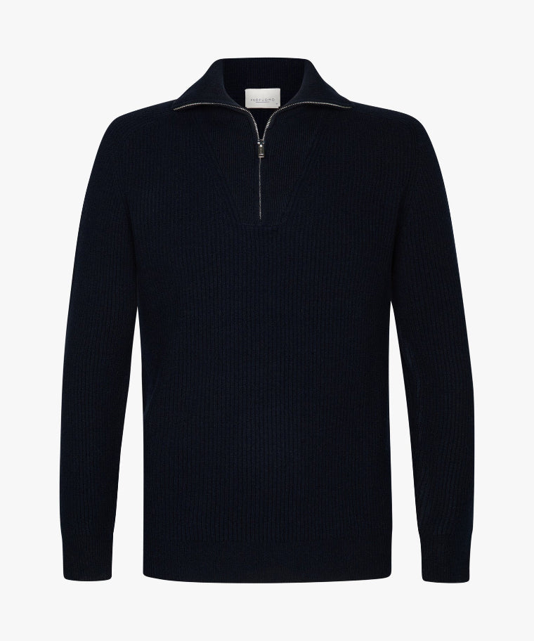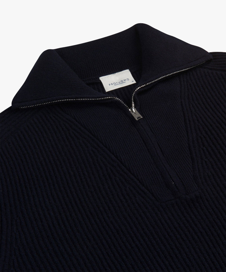 Pullover mit kurzem Reissverschluss aus 100 % Wolle in Navy.